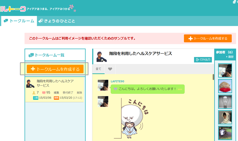 1-3. 「+トークルームを作成する」ボタンをクリック。