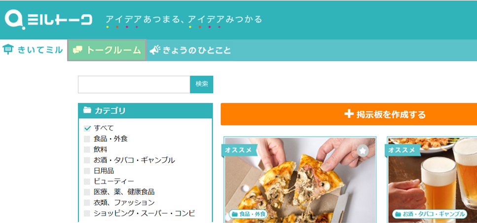 1-1. ミルトークにログインし、左上「トークルーム」をクリック。