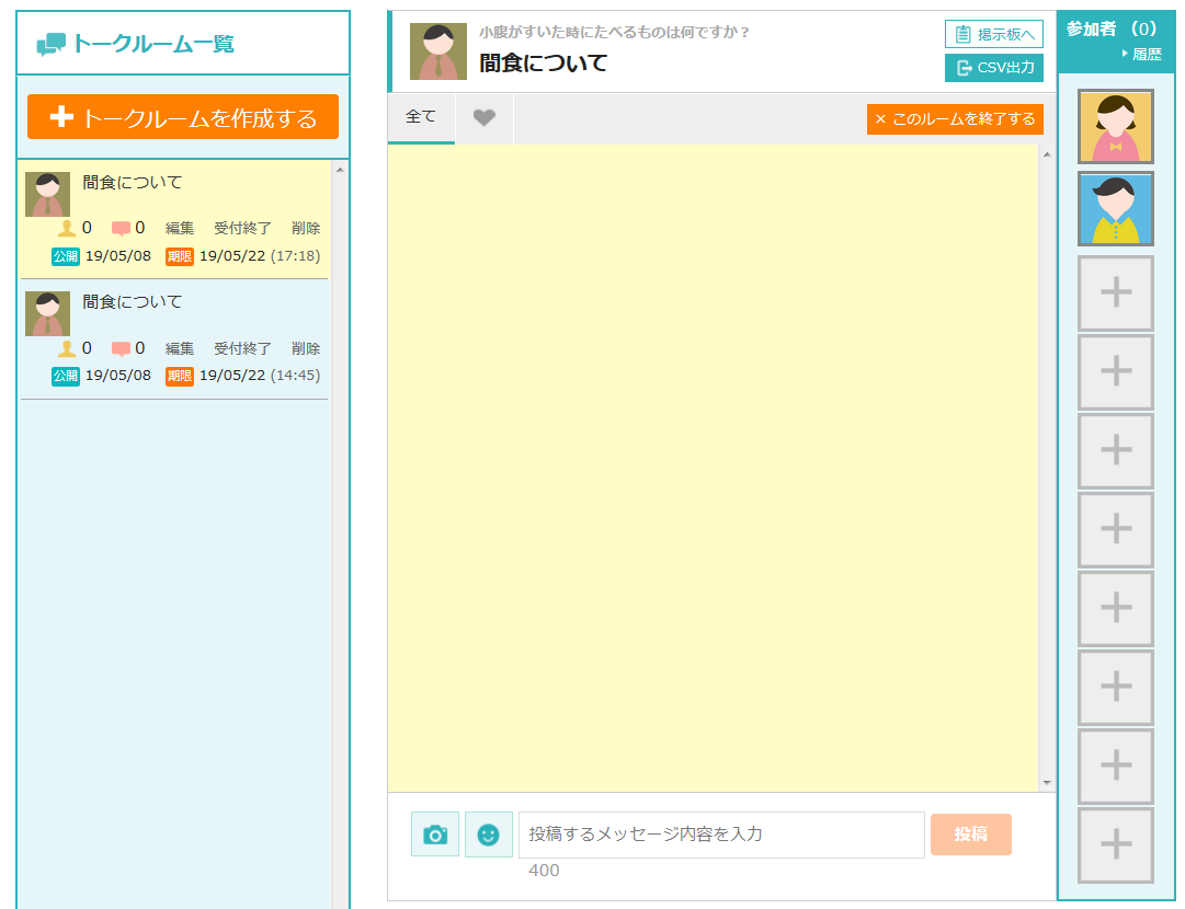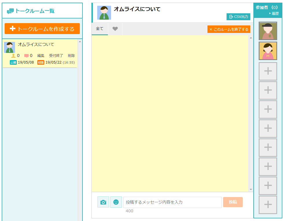 1-7. 作成したトークルームが表示されます。これでトークルームの作成は完了です。